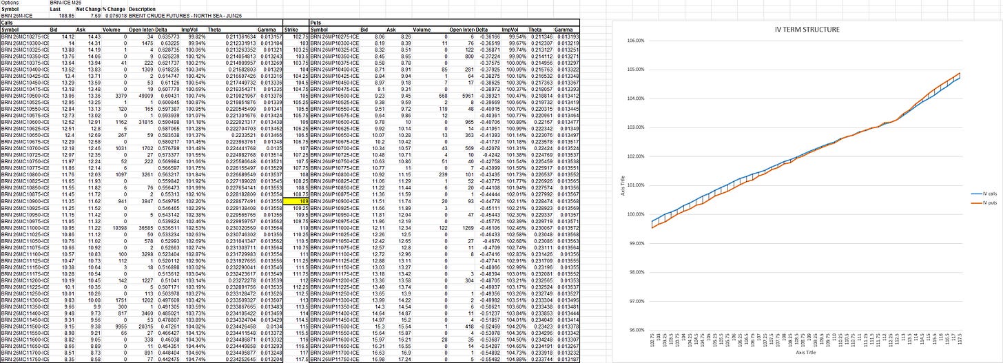 There is a particular kind of market complacency that only becomes visible in retrospect — the kind where participants price a risk premium as temporary, mean-reverting, and fundamentally tradeable, right up until the moment the physical reality underneath it makes the premium structural. We are living through exactly that transition in the distillate complex right now, and the speed at which the consensus is updating is, charitably, not impressive. But there is a second failure happening simultaneously, one layer up the analytical stack, and it is this: even the traders who have correctly identified that something unusual is happening in the physical market are misreading what the options market is telling them about it. The volatility smile on Brent is not a directional forecast. It has never been a directional forecast. Understanding what it actually encodes — and what the current shape of the ICE Brent June 2026 term structure is screaming in particular — is the difference between a hedge book that survives this cycle and one that explains itself to a risk committee.