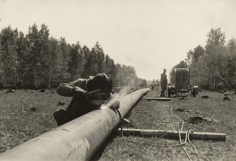 There is an old Soviet joke that circulated among pipe-rollers — workers at the great steel mills who produced the pipelines threading across the USSR. Their unofficial motto: the pipe belongs to the country, the pipe belongs to the people (Труба - стране, труба - народу).